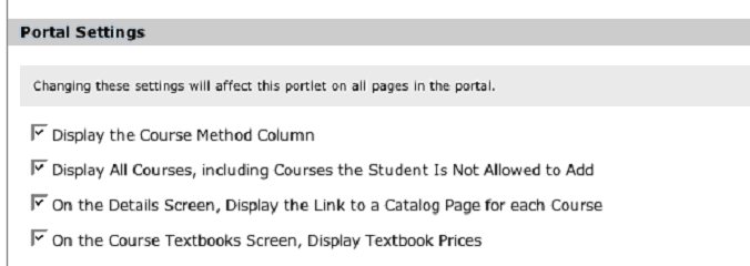 Course Schedules is a robust portlet that allows the user to view a list of classes the institution offered or is offering for a selected Year and Term (a single Session).