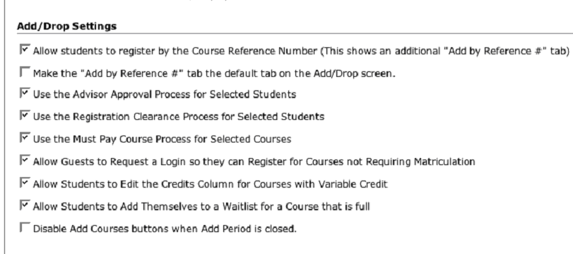 The Student is able to access the Add/Drop Courses screen where the Student can register for a course.