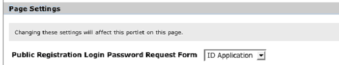 When accessed from the public view, the user can view course information and certain courses can be made available for public registration.  The user must log in to register for a public registration class.  If the user does not have a username and password, a link on the login screen allows the user to use the Public Registration portlet to apply for a login and password.  Navigate to Setup -> Page Settings -> Public Registration Login Password Request Form to select a request form.  The Account Notification portlet will send the user the login and password information, which the user can use to register for public registration courses.